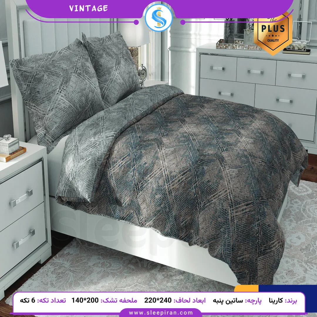 روتختی دو نفره 6 تکه ساتین پنبه پلاس کارینا مدل وینتیج ملحفه 140